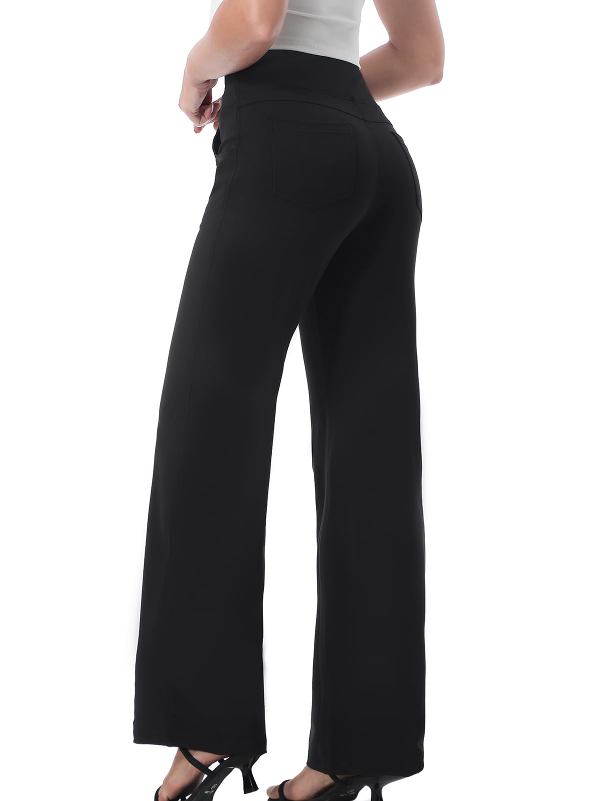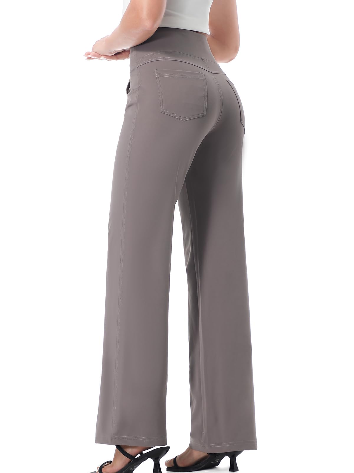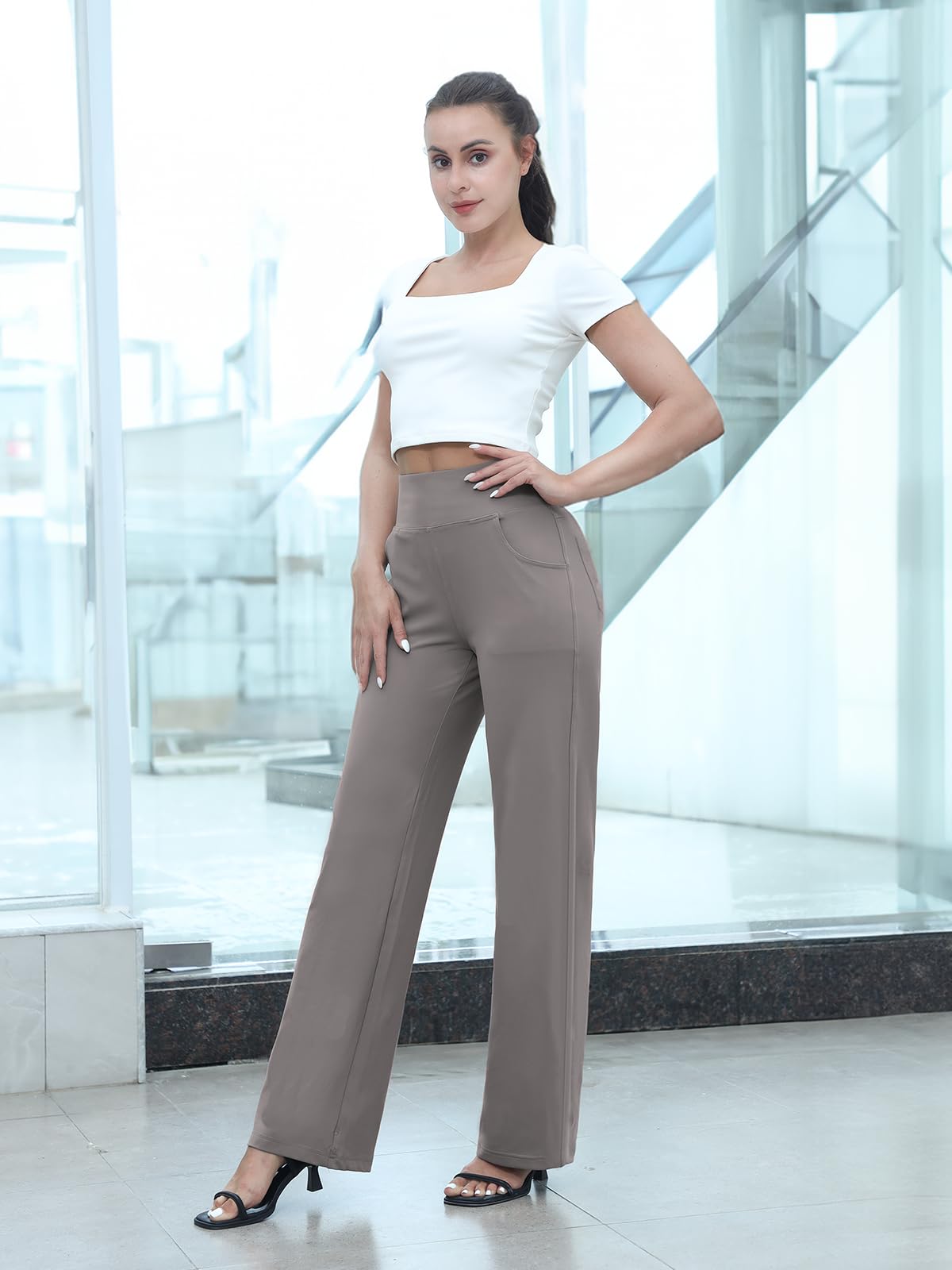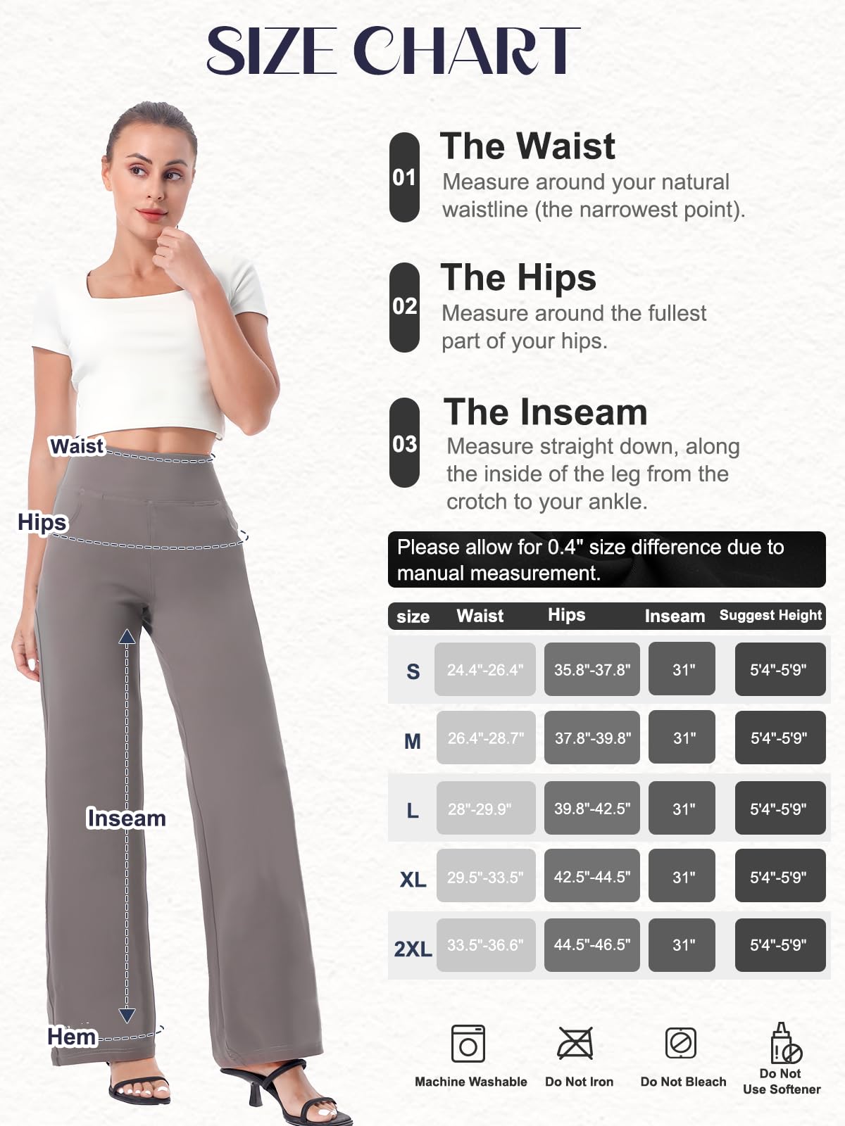 Wide Leg Pants for Woman, High Waisted Loose Casual Pull on Yoga Pants with Pockets Dress Trousers for Work/Athletic