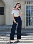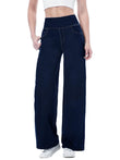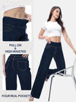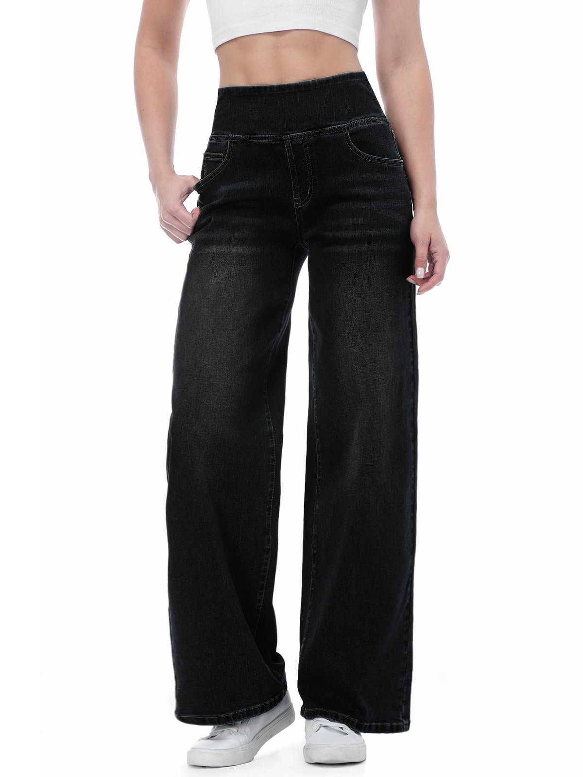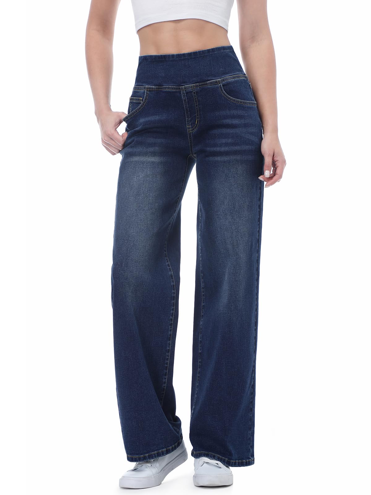 Pull on Wide Leg Jeans for Women, High Waisted Stretchy Baggy Trendy Tummy Control Straight Leg Jeans Denim Pants
